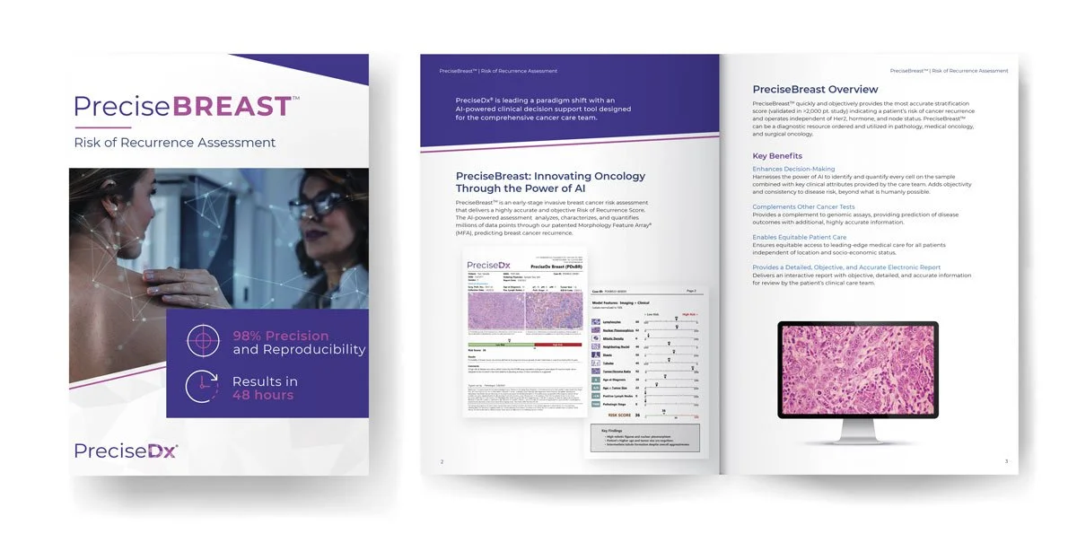 Designed for both print and digital platforms, this 8-page brochure was crafted to convey information about PreciseDX's cutting-edge technology and illustrate the potential impact it could have on prospective patients. Regular weekly meetings with PreciseDX were held to gather art direction and secure relevant images for the brochure.